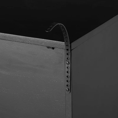 Add functional style in your entryway, living room or other area of your home with the Wood & Cane Console Table with Pull-Down Drawers from Hearth & Hand™ with Magnolia. Crafted from solid wood, this rectangular console table features a clean-lined silhouette in a solid black finish that blends easily with a range of different palettes and decor styles. The cane accented pull-down drawers provide plenty of room for storage, while its bottom shelf offers storage for tucking extra items out of the way. Stage it in the hall or behind the living room sofa with your favorite decorative items, greenery and family photos to bring your personal touch.